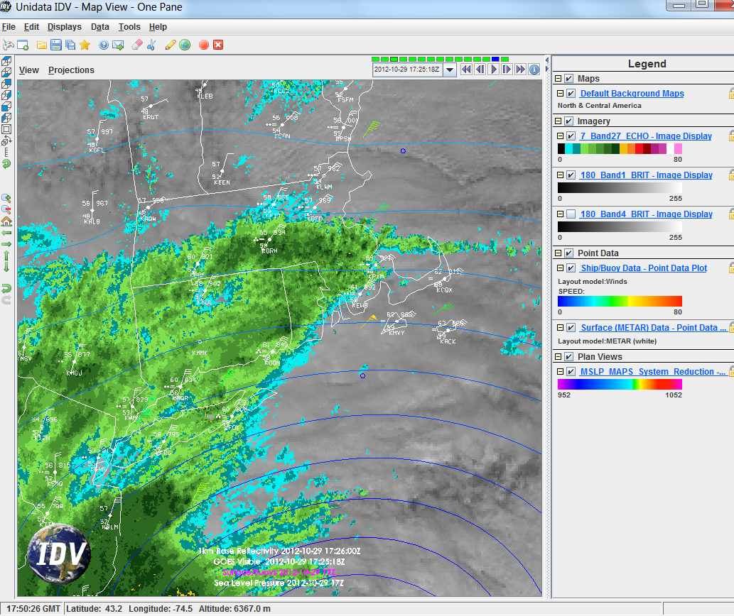 Don, Very cool. The USGS in Woods Hole is shut down today, but for now, we still have power. So I could load your bundle and see why we haven't had any significant rain yet -- we are just enough on the east side of the track. -Rich On Mon, Oct 29, 2012 at 11:06 AM, Don Murray <don.murray@xxxxxxxx> wrote: > Hi there- > > For anyone interested, I created a bundle that you can use to watch > Hurricane Sandy as she approaches the East Coast of the US. It is available > through the IDV's Catalog chooser under: > > IDV catalog > > Example Bundles from the Unidata RAMADDA Server > > Hurricanes > > Realtime weather display over East coast > > or directly from the Unidata RAMADDA server: > > http://motherlode.ucar.edu/repository/entry/get/sandywx.xidv?entryid=1348d09e-ba32-42a3-95fa-1b9722cbfb88 > > It uses the new IDV 3.1 time matching features to coordinate the satellite, > radar, surface/buoy and grid data. > > Enjoy and for those on the East Coast, be safe. > > Don > -- > Don Murray > NOAA/ESRL/PSD and CIRES > 303-497-3596 > http://www.esrl.noaa.gov/psd/people/don.murray/ > > _______________________________________________ > idvusers mailing list > idvusers@xxxxxxxxxxxxxxxx > For list information, to unsubscribe, visit: > http://www.unidata.ucar.edu/mailing_lists/ -- Dr. Richard P. Signell (508) 457-2229 USGS, 384 Woods Hole Rd. Woods Hole, MA 02543-1598