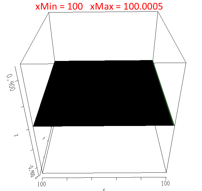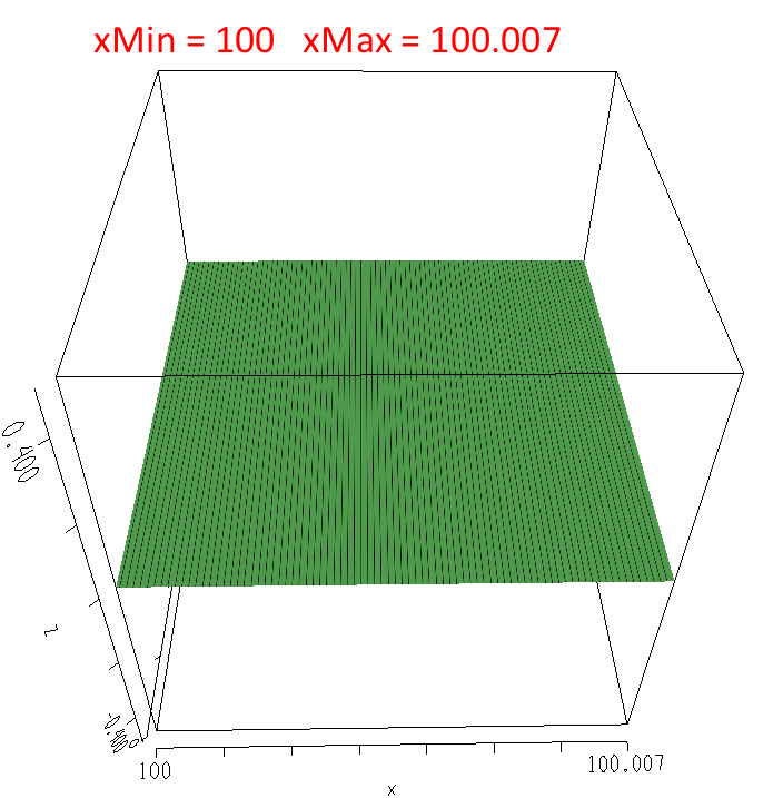 Dear VisAD developers, We are using VisAD for the visualization of mass spectrometry data as part of the MZmine 2 framework (http://mzmine.sourceforge.net/). I found that sometimes the visualization is affected by the range of the axes. When visualizing a narrow range of data, the plot shows some strange artefacts such as lines. After a bit of debugging, I managed to write a short Java program that demonstrates the issue (attached as VisadTest.java) The program creates a simple Linear2DSet of 1000 x 1000 dimension. The Z values are set to zero for the whole domain, therefore the visualization only shows a flat plane. The strange thing is that depending on the range of the X axis, the visualization is different (note that the resolution of the Linear2DSet stays constant). The range of the X axis is defined in the program here: double xMin = 100; double xMax = 100.007; I have attached screenshots demonstrating the VisAD behavior as I change the range of the X axis from 100-100.5 to 100-100.0005. Finer ranges show some strange patterns instead of solid color. Is this behavior normal? I believe the visualization should be exactly the same except the X axis label. Is this a bug of VisAD? Best regards, Tomas PS: I am using the latest VisAD (Thu Mar 22 13:01:31 CDT 2012 Rev:5952), running Java 1.6.0_31 on Mac OS X 10.7.4. =============================================== Tomáš Pluskal G0 Cell Unit, Okinawa Institute of Science and Technology Graduate University 1919-1 Tancha, Onna-son, Okinawa 904-0495, Japan TEL: +81-98-966-8684 Fax: +81-98-966-2890