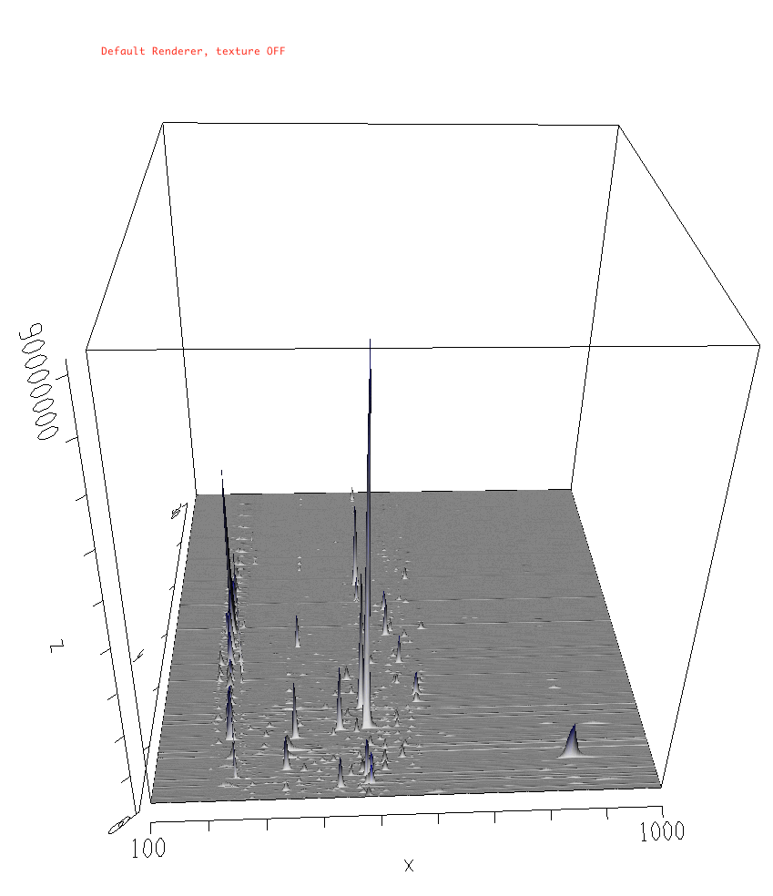 Dear Ghansham, Thank you for sending the class, I could compile and test it. I can confirm that using your modified ShadowImageByRefFunctionTypeJ3D class the situation is somewhat improved, however the visualization using texture ON is still not very useful for MS data. It is more apparent when I applied the color map that we normally use in MZmine. Please check the attached screenshots: - with texture off - with texture ON using default visad.jar - with texture ON using your modified ShadowImageByRefFunctionTypeJ3D So far I think we will stick to setting the texture OFF. Best regards, Tomas